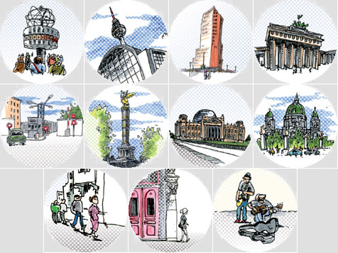 für eine freundin, die einen laden für handgemachte magnetbretter betreibt (unbedingt anschauen: www.strandgutfischer.de) habe ich ein berlin-motiv gezeichnet: den stadtplan als grund, der mit knapp einem dutzend verschiedenen sehenswürdigkeiten-buttons ergänzt werden kann. das ganze gibt’s ab sofort online bei ihr im shop zu erstehen oder offline in einigen berliner souvenir-läden (und natürlich im ladengeschäft hein-hoyer-str. 73, hamburg).